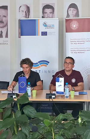 Kristina Hlavati, Katarina Kostelić i David Demanuele predstavnici su SMART INNO projekta sa Sveučilišta Jurja Dobile u Puli koji su nazočili sastanku. Hlavati i Kostelić prisutnima su predstavile Sveučilište Jurja Dobrile u Puli i područje djelovanja SMART INNO projekta. Također, predložena su moguća područja kooperacije između dva projekta, što su prisutni svesrdno prihvatili. Naime, osim prijedloga povezivanja online sustava, predloženo je i udruživanje snaga u području organiziranja i održavanja radionica, predavanja, konferencija i drugih aktivnosti koje poduzetnicima omogućuju lakši pristup informacijama, znanjima i novim tehnologijama, te stvaraju priliku za povezivanje s akademskim kadrom, institucijama, potencijalnim klijentima, drugim gospodarskim subjektima, ali i investitorima i mentorima. Nadalje, s obzirom na sličnosti projekta, utvrđeno je da postoje aktivnosti koje se ponavljaju. Usklađivanje aktivnosti kojima bi se izbjeglo njihovo dupliranje, rezultiralo bi i manjim troškovima, što bi oslobodilo sredstva koja bi se mogla usmjeriti na ciljnu skupinu: startupe i SMEs. U diskusiji koja je uslijedila nakon izlaganja više se partnera složilo s idejom povezivanja kako bi zajedničkim naporima postigli dugoročne i održive rezultate s konkretnim doprinosom razvoju poduzetništva u regiji.