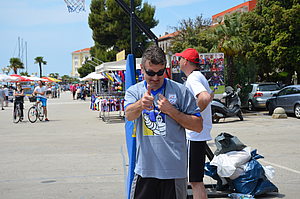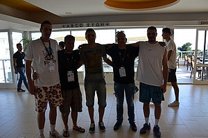Predstavnici u muškoj konkurenciji u odbojci na pijesku bili su studenti Vedran Arapović i Michele Matošević koji su tjedan prije vratili s zlatom oko vrata s međunarodnog sveučilišnog odbojkaškog natjecanja u Varaždinu (dvoranska odbojka). Međutim, još se jednom pokazalo kako se odbojka na pijesku i dvoranska odbojka uvelike razlikuju po brojnim elementima. Pulski su studenti izgubili oba meča u grupi C s 2:1 u setovima ali na način da su oba meča izgubili tako što s u trećem setu poraženi s 16:14. Nakon zlata iz Varaždina sve im je oprošteno.